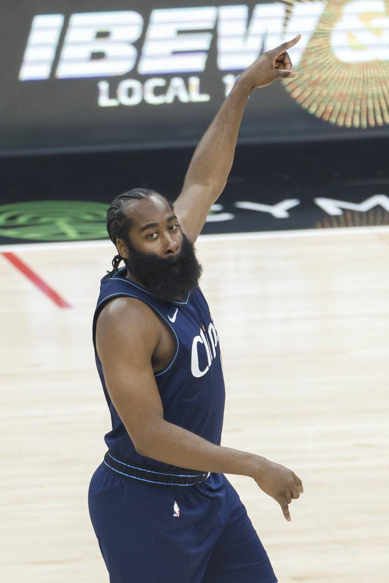 在历史得分榜上,位列哈登之前的是另一位传奇中锋威尔特·张伯伦,目前两人之间尚有2000多分的差距。