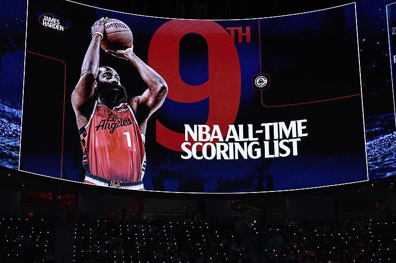 在比赛进行到第三节时,快船球星詹姆斯·哈登于顶弧命中一记急停三分。凭借这粒进球,哈登的职业生涯常规赛总得分来到28598分,正式超越沙奎尔·奥尼尔,升至历史第九位。